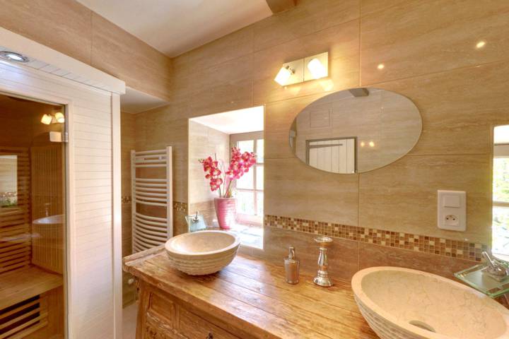 Salle de bain et sauna de la suite Roseraie